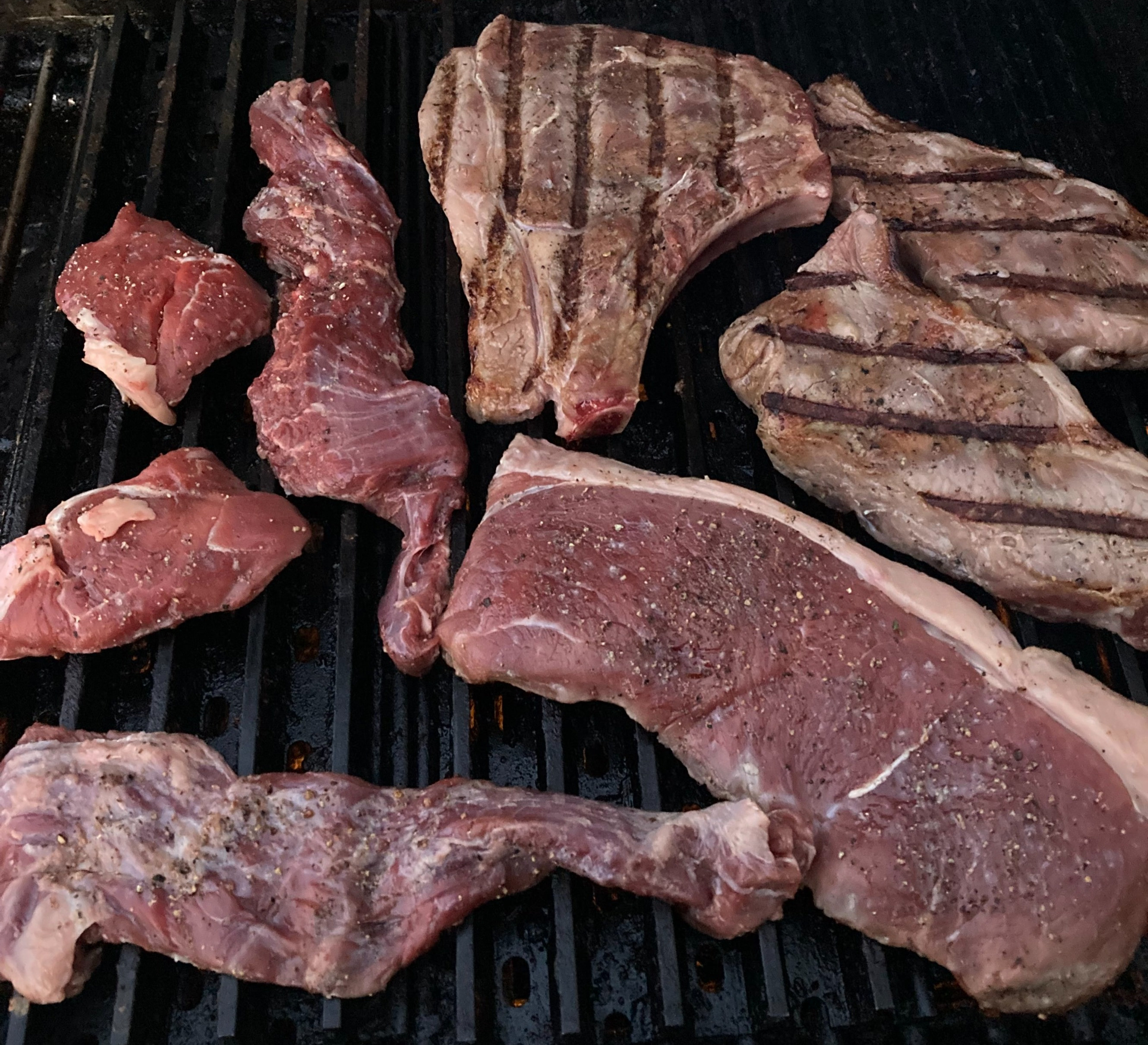 We sell our angus beef in 10-lb boxes. To meet your family's needs, we offer two different types: a mix of steak and ground beef, or only ground beef.